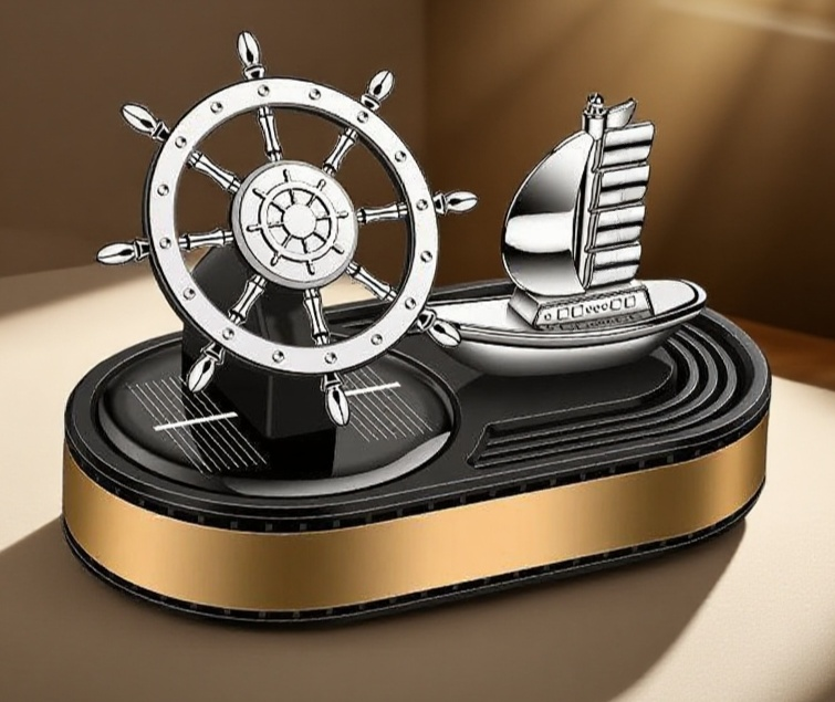 Solar powered car aromatherapy ornament automatically diffuses fragrance, eco-friendly, no batteries needed, easy installation, enhances air quality, suitable for any vehicle.