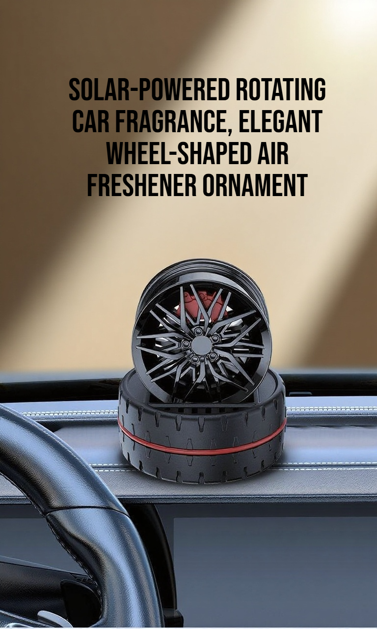 Solar-powered rotation, freshens car air, long-lasting aroma, easy installation, stylish accessory, eco-friendly, suitable for all vehicles.